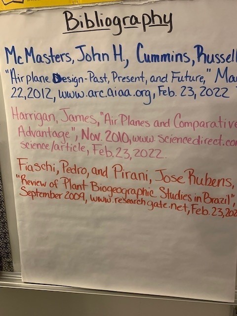 My example and anchor chart for what a proper bibliography looks like.