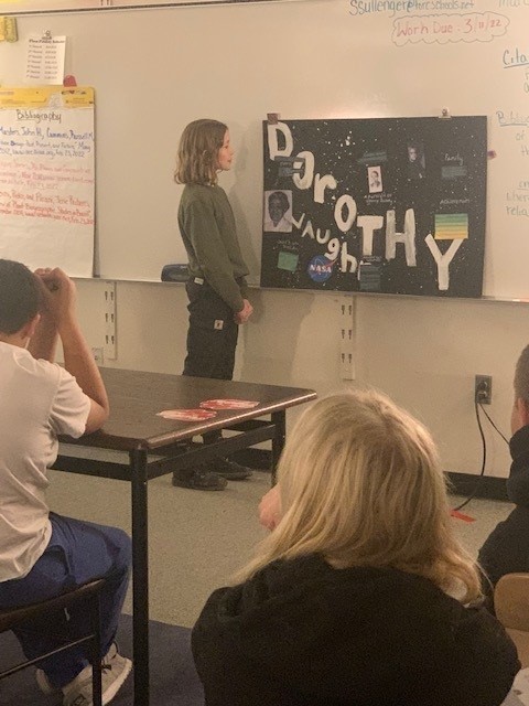 Hidden Figures Book study and presentations is my favorite unit for 6th grade English. This unit covers reading, writing, public speaking, and social studies standards, while simultaneously including science and math. During this unit, we read about and discuss space, aerodynamics, historical events, and the lives of four women who broke barriers and helped the United States reach the moon. Students then pick a topic related to the book, conduct research, build a presentation, and teach the class about their topic. I love the student’s creativity and own analysis of events from the book. Students must research, create a bibliography, write three paragraphs about their topic, present the information to the class, and be good audience members for their peers. It is highly engaging and interactive for all students. I look forward to this unit every year! My students make me proud.