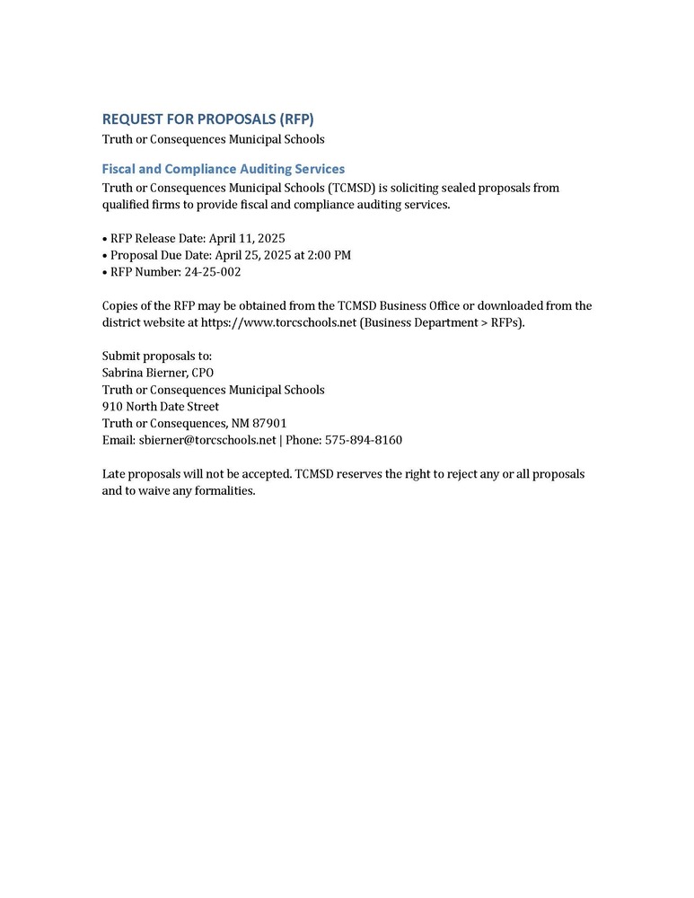 TRUTH OR CONSEQUENCES MUNICIPAL SCHOOL DISTRICT IS CURRENTLY SEEKING APPLICATIONS FOR OPEN POSITIONS